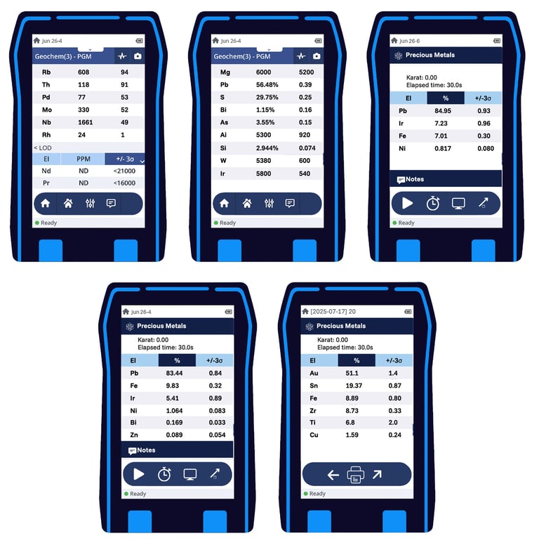 XRF showing traces of AU,IR,RH,PD and other important minerals.